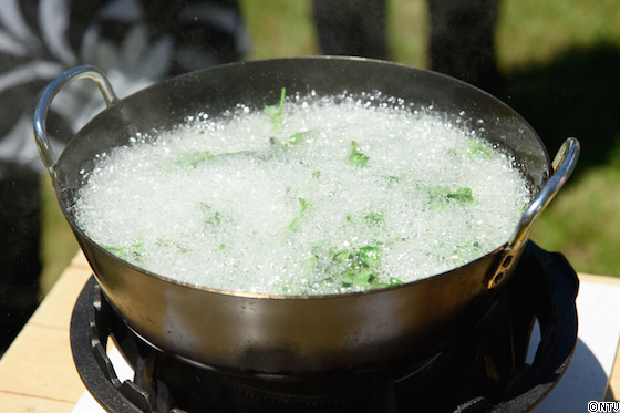 クレソンをそのまま油の中へ!