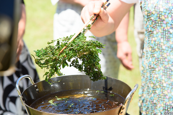 青空の下で食べるやはたいも料理に大満足!
