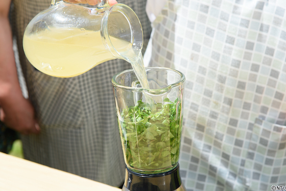 刻んだクレソンとパイナップルジュースをミキサーで混ぜるだけ!