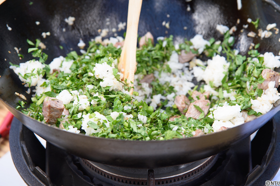 牛肉入りクレソンチャーハンを作っていただきました!