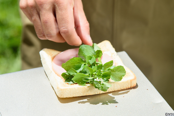 クレソンと、パン・マーガリン・ハム・マヨネーズだけで作る簡単なサンド。