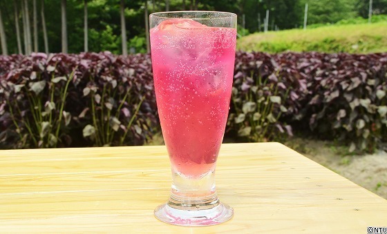 3.沸騰した湯の中へ取っておいた「赤しその葉」をいれる。
