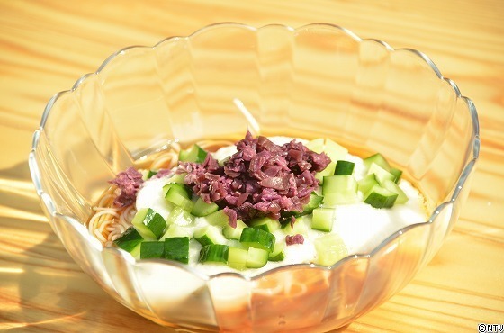 2.ソーメンはたっぷりのお湯で茹で、しっかり揉み洗いして、氷水でしめ、器に盛る