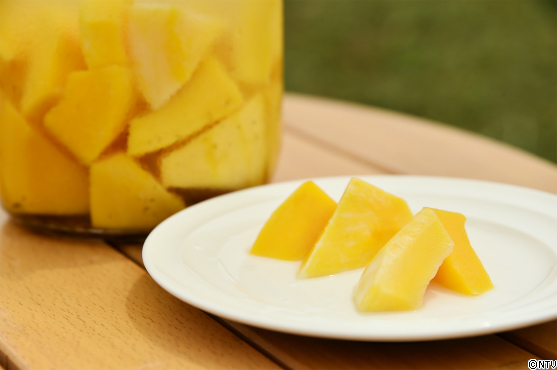 1. ズッキーニを乱切りにして、180℃の油で揚げ、そのまま熱いうちにめんつゆに浸す。2~3時間置く