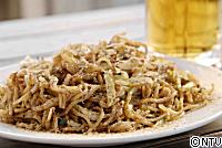 ⑦お皿に盛り付け、いわしの削り粉をたっぷりかけ、紅しょうがを添える