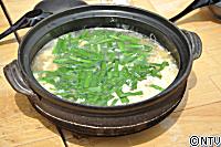 2)煮えたら、白子と、さらに味噌を溶かし、味を調える
