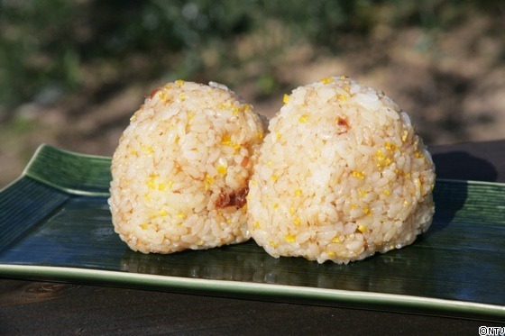 3、おにぎりの両面を焼き、2を塗り、更に両面を色よく焼く。