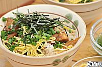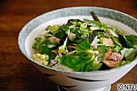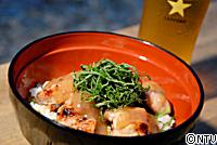 ②ご飯の上にお好みの量を載せ、彩りに水菜を飾る