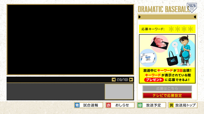 - テレビの電源をオフにしたり他のチャンネルを選局した場合、プレゼントキーワードが表示されない場合があります。