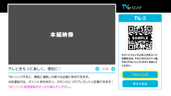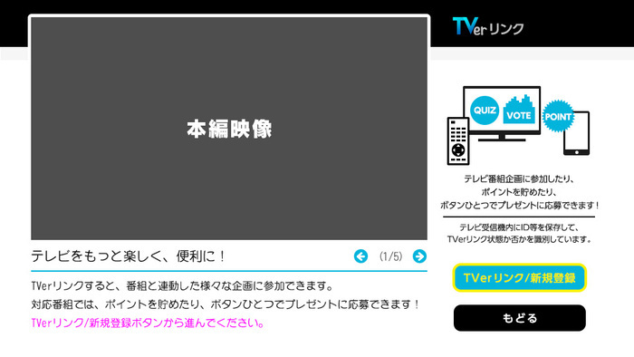※アカウント登録がまだの方は新規登録(無料)が必要です。 - ログイン後、データ放送画面右下の【TVerリンク】ボタンを押せば設定完了です。