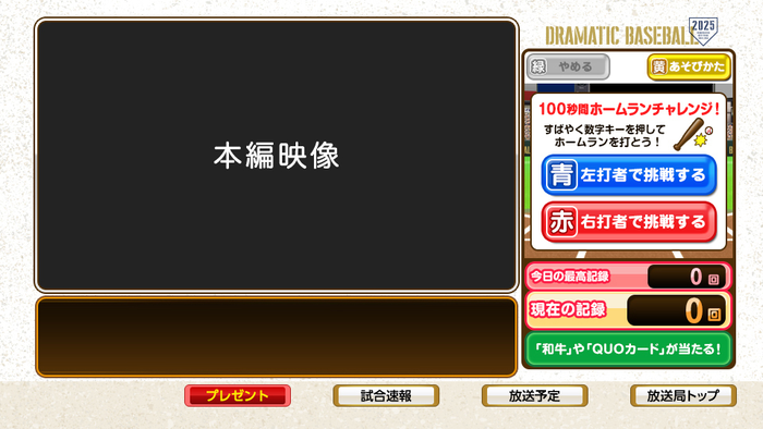 - ★100秒間でたくさんのホームランを打って豪華プレゼントに応募しよう!