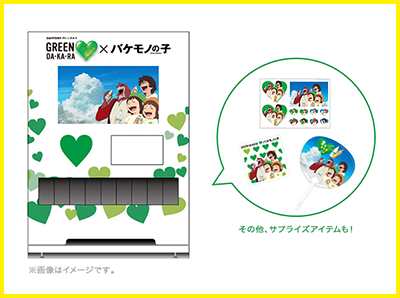そしてグリーンダカラが特別企画を実施! 「GREEN DA・KA・RA」×「バケモノの子」 オリジナル自動販売機に挑戦すると、 “バケモノの子”コラボデザインの熱中症対策アイテムをプレゼント!
