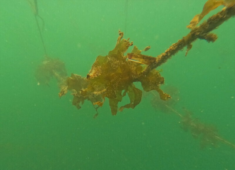 収穫タイミング時には、わずか5㎝程度のワカメの種が