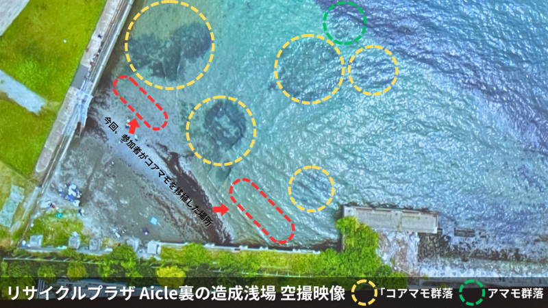 リサイクルプラザAicle裏の造成浅場は 自然発生したコアマモの群落だけでなく