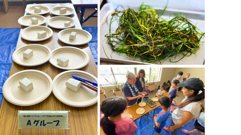 そして 近海で採取したコアマモの苗根の移植し 藻場面積を広げることを目的に、