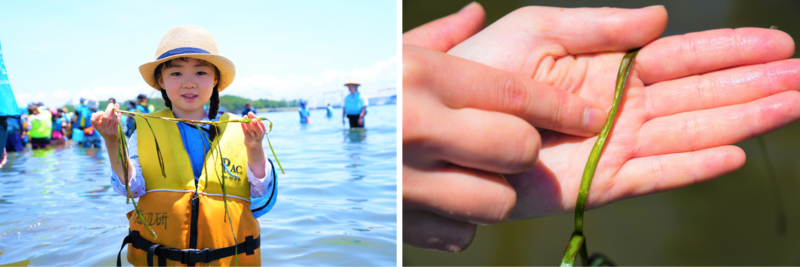 道中、先月 日本テレビグループなどが植えた“アマモの苗”が しっかりと育っているのを発見。