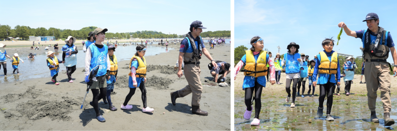 その後、ボランティア参加者は 腰の辺りまで海に入り、