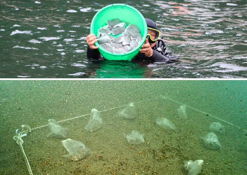 続いて、藻場造成メンバーは 海に潜り、