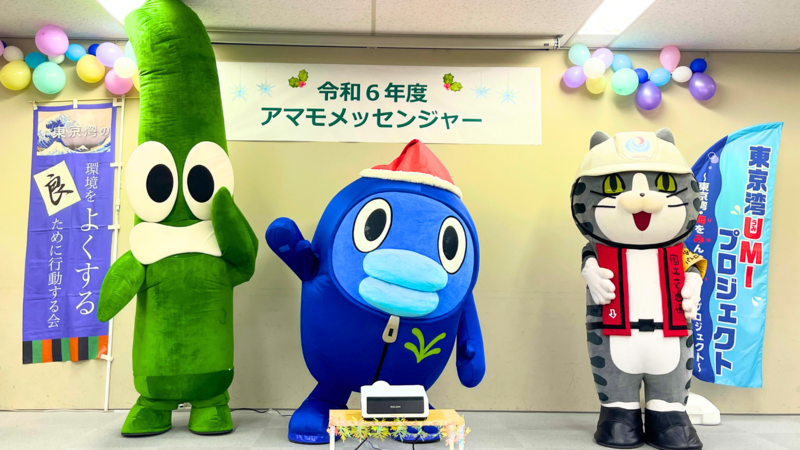 アマモ場再生に取り組む妖精“アマモン”、そして 国土交通省関東地方整備局から“仕事猫”が参加。