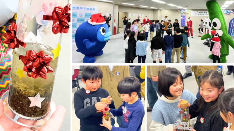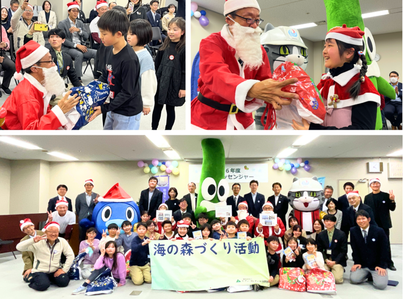 サンタの恰好をした国土交通省関東地方整備局副局長へ手渡しをし、アマモリレーは終わります。