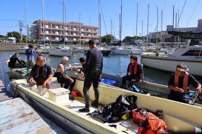 藻場造成メンバーは 小型の船に乗り込み、出発地・諸磯ヨットオーナーズクラブを後にします。