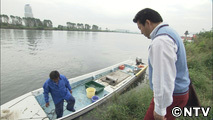 舞の海さんは風情ある荒川の土手を歩いていると、荒川で投網をしている方と遭遇。