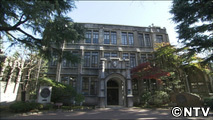 洋風建築が漂うキャンパスを目の当たりに感激する石井さん。