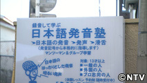 普通の一軒家の壁に「日本語発音塾」と書かれた看板が。