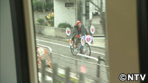 電車に乗って車窓の景色を眺めていると、派手な自転車に乗った人を発見。