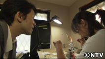 恐竜や昆虫など緻密に作られた作品に興味津々の宮川さん。