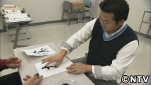 指で書いたとは思えない作品に感動し、舞の海さんも指書道に挑戦!