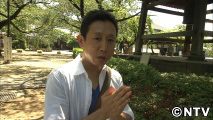 アイスクリーム屋を後にした片岡さん、道すがらの遊歩道で出会ったカルガモの親子に