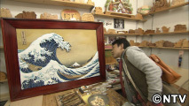 立体仕立てに木で作られた絵画も見せてもらい、石井さんはその精巧さと立体感にびっくり!