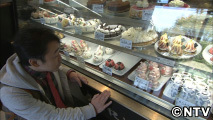 一軒のケーキ屋さんの「アニマルケーキ 復活でござる」という貼り紙が気になった石井さん。入ってみると、ショーウィンドウには、かわいらしいブタやうさぎ、サルの形をしたケーキがあり、今回復活したというおサルさんのケーキをいただきました。