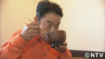 落ち着いた雰囲気の部屋で食事中の石丸さん。