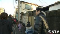 陽も傾き始めた頃、ライトを持ってどこかへ向かう子どもたちを発見!