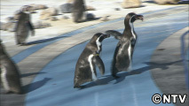 お湯にうたれるカピバラを眺めながら足湯に浸かっているのは、初ぶらり旅の小椋さん。冬限定のカピバラのお風呂は大人気です。他にも、放し飼いのマーラや波にゆれるペンギンに大はしゃぎの小椋さんでした。