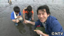 潮干狩りシーズンの到来。浅瀬で宮川さんが子ども達に交じって何かを待っています。泥に刺した松葉を引き上げると…!?松葉を使ってアサリを釣る「松葉釣り」に挑戦したのでした。