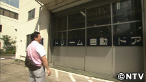 工場ばかりの街を歩いていると、すごく大きな自動ドアを発見!