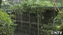 繁華街を抜けて住宅街で発見したのは何やら大小様々な木を干している住宅。