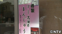 ぶらりしていると和菓子屋さんで「特製 ソース焼きまんじゅう」の張り紙を見つけます。気になり食べてみる事に。
