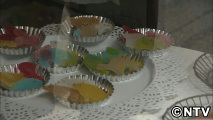 見た目は喫茶店のようですが、窓際にはカラフルで可愛いブローチ?