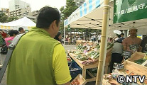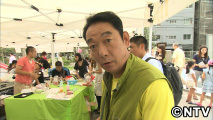石丸さんと、この日初めて開催された大型市場「太陽のマルシェ」で待ち合わせ。金魚すくいならぬ「トマトすくい」をはじめ、全国から集った新鮮な野菜や、ワークショップを体験できるのが魅力。マルシェで元気の栄養補給!