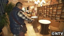 歩いていると一軒の店先にダンボールで作られたペンギンや椅子が置かれており、