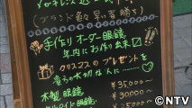 手作りオーダー眼鏡と書かれた看板によくメガネを掛ける宮下さんは興味津々。
