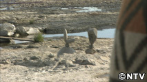 多摩川の河原を歩いて行くと、変な形に積まれた石を発見。近くで見てみると普通では考えられない形に石が積まれています。