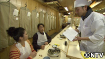 終点梅田で下車した石丸さん。発見したのは「かまぼこ」と書かれたお店。のぞいてみると、蒲鉾屋さんには見えません。聞くと、揚げたての天ぷらをいただける居酒屋だそうで、大阪では魚のすり身を揚げたものを天ぷらというのだそう。変わりダネの大阪版天ぷらをいただいてみることに。