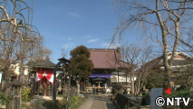 今が見頃の椿や桜を見ていると、一足先にお寺にやって来た田山さんが何か面白い物を見つけたそう。ユニークな展示をたっぷり楽しんだ後、駅に向かいます。