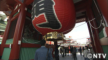宮下さんはまず、雷門に向かい、仲見世通りをぶら~り。