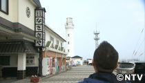 犬吠崎の灯台のふもとに海鮮料理の看板に惹かれたたい平さん。